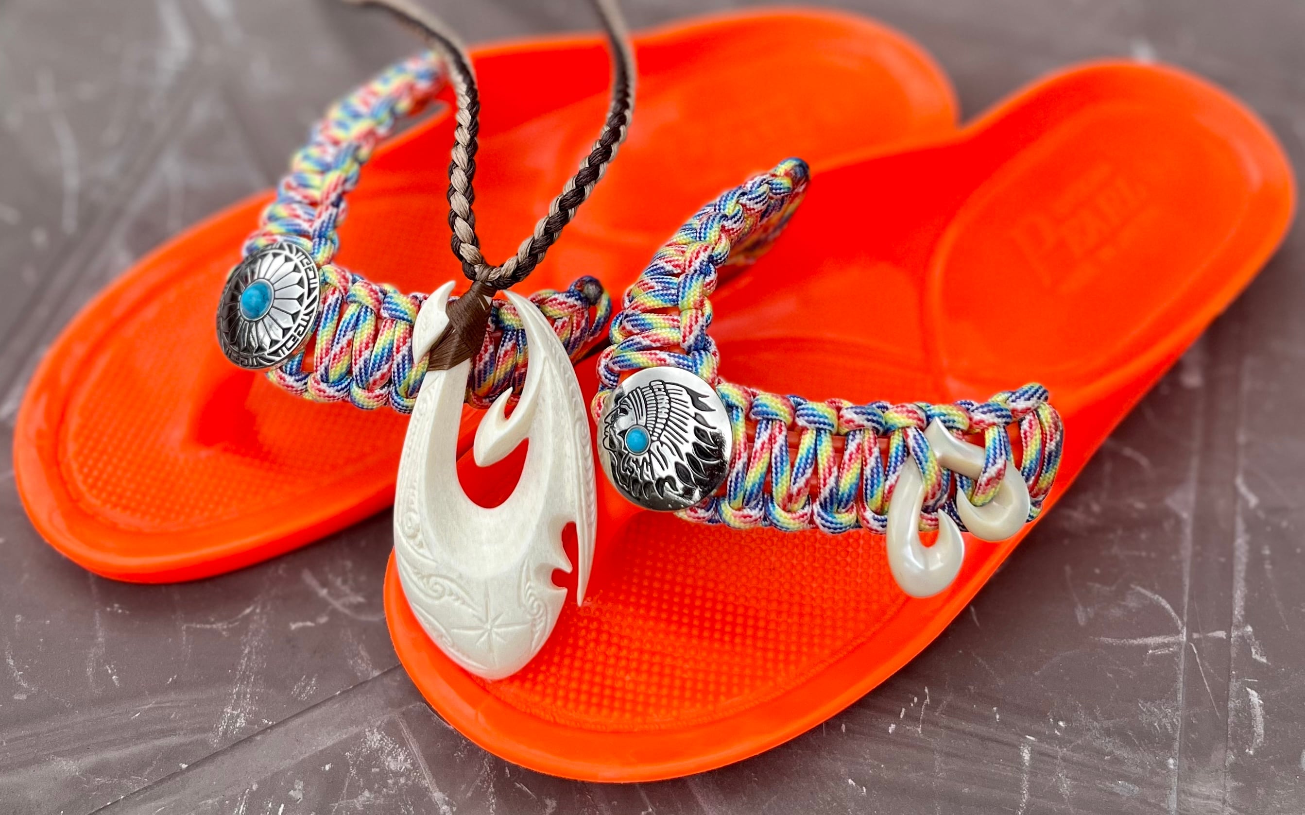 鯨・牛の骨・水牛角・夜光貝などをカットし、全てオリジナルデザインでひとつひとつ手作業で仕上げてますので1つとして同じものはありません。